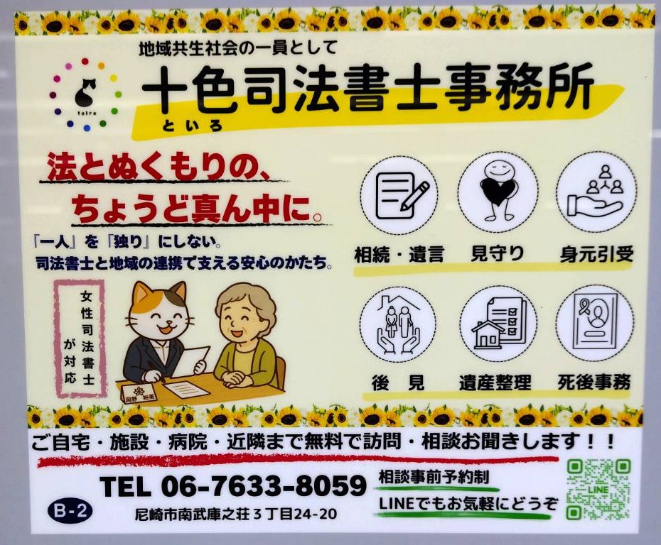 相続登記・遺言書作成・見守り契約・死後事務委任など、暮らしに寄り添う法務サポートを行っております。