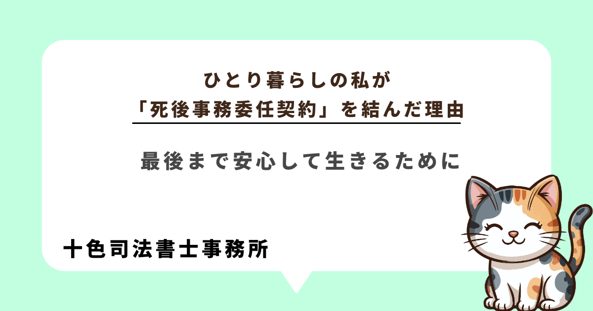 長年ひとりで暮らし、近くに親戚もいない。そんな中で体調を崩したことがきっかけで、ふと「自分が亡くなったあと、誰が片づけてくれるんだろう」と思ったそうです。